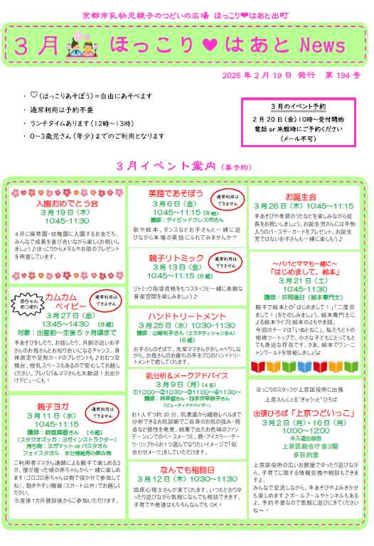 2月20日(金)10時~ 3月イベント予約受付開始