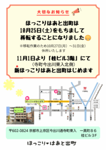 ほっこりはあと出町は、10月25日(土)をもちまして移転することになりました。